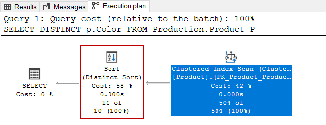 As we can see, the sort operation is performed by the SQL Server before the stream aggregate operator.