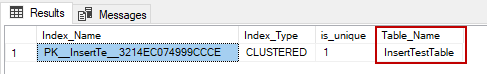 CREATE TABLE InsertTestTable( Id INT PRIMARY KEY IDENTITY(1,1) NOT NULL , Col VARCHAR(50) NOT NULL) GO |