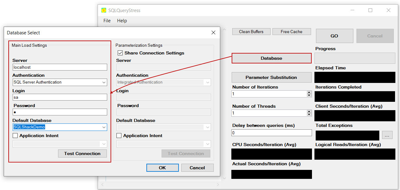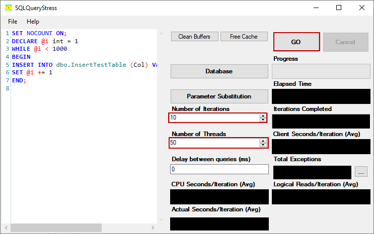 As the second step, we will set the Number of Iterations as 100 and the Number of Threads as 100. So that, SQLQueryStress the query will run 10 times by the 50 threads concurrently.
