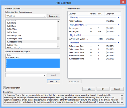 Windows Performance Monitor - the Add counters dialog