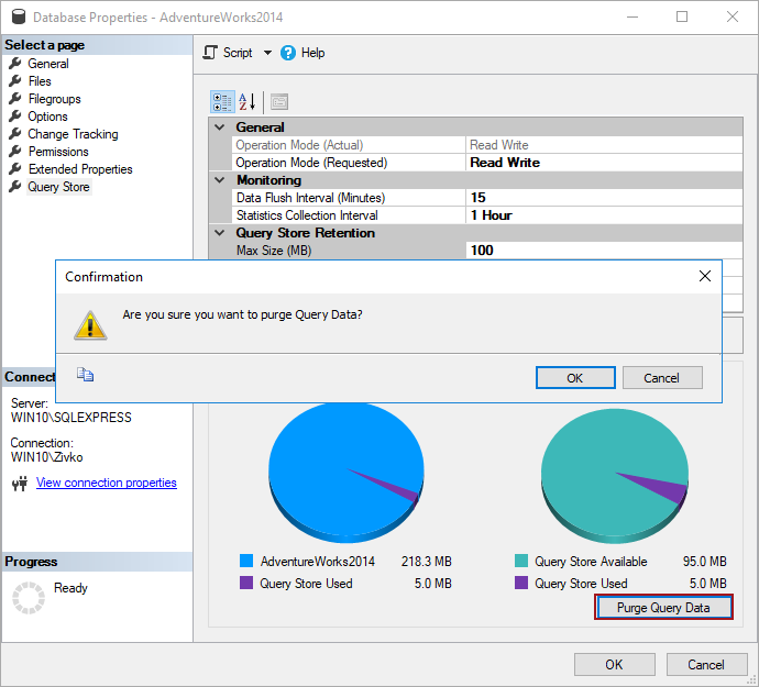By pressing the OK button on the Database Properties dialog, the SQL Server Query Store is enabled to capture query execution plans and runtime information.