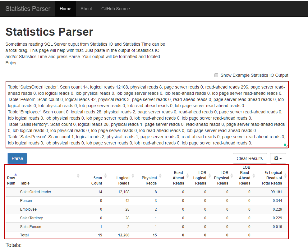 However, this report output may seem a bit sophisticated and difficult to read. For this reason, we can use the Statistics Parser to transform this output more readable. On this web page, we just need to only paste the output of the report and click the Parse button.