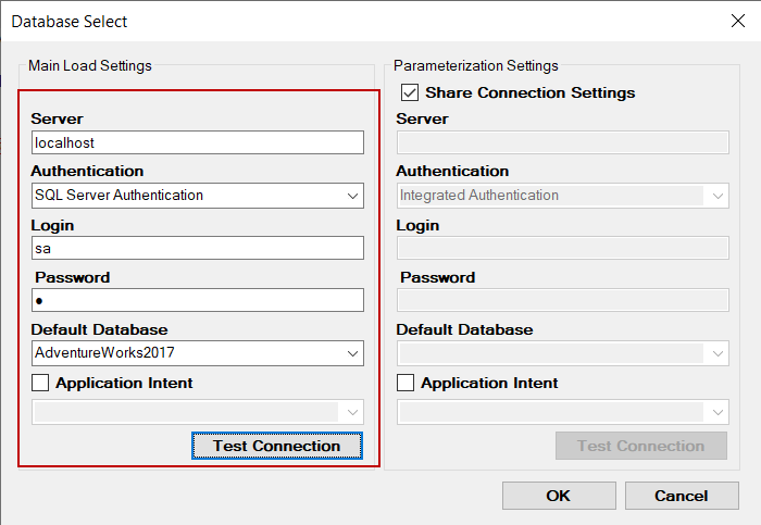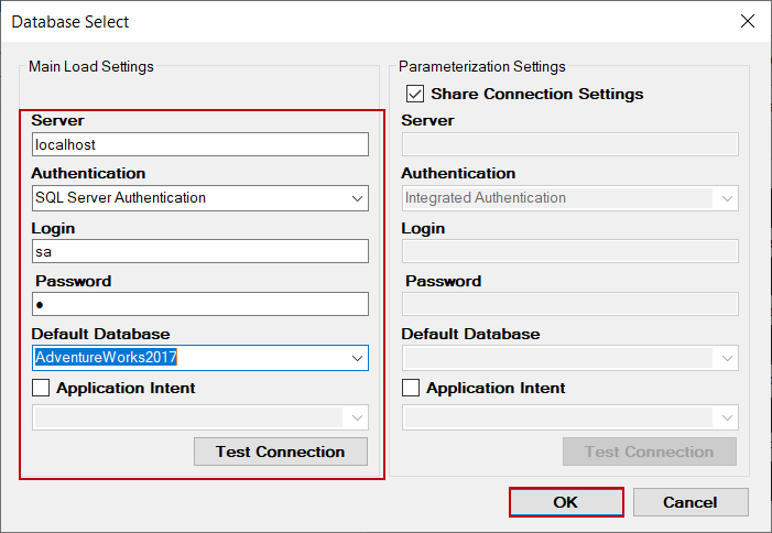 We will click the Database button and set the database connection and credentials settings.