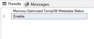 SELECT CASE SERVERPROPERTY('IsTempdbMetadataMemoryOptimized') WHEN 1 THEN 'Enable' WHEN 0 THEN 'Disable' END AS 'Memory-Optimized TempDB Metadata Status' |