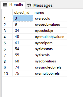 SELECT mem_table.[object_id], obj.name FROM tempdb.sys.all_objects AS obj INNER JOIN tempdb.sys.memory_optimized_tables_internal_attributes AS mem_table ON obj.[object_id] = mem_table.[object_id] |