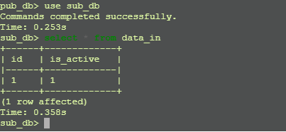 CREATE DATABASE pub_db CREATE DATABASE sub_db GO use pub_db GO CREATE TABLE [dbo].[data_in]( [id] [bigint] IDENTITY(1,1) PRIMARY KEY, [is_active] [bit] NULL ) GO |