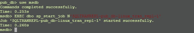 USE msdb GO EXEC dbo.sp_start_job N'SQLTRANREPL-pub_db-linux_tran_repl-1' |