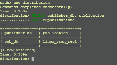 USE distribution GO SELECT publisher_db, publication FROM MSpublications GO |