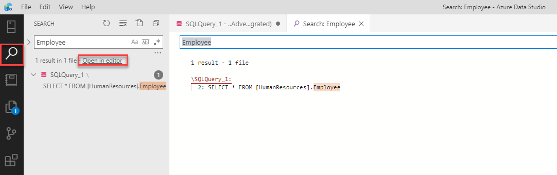 If the database object that you manage to interact with is not shown directly in that window, you can easily search for it by providing the name, or part from the object name, then choose it from the displayed result.