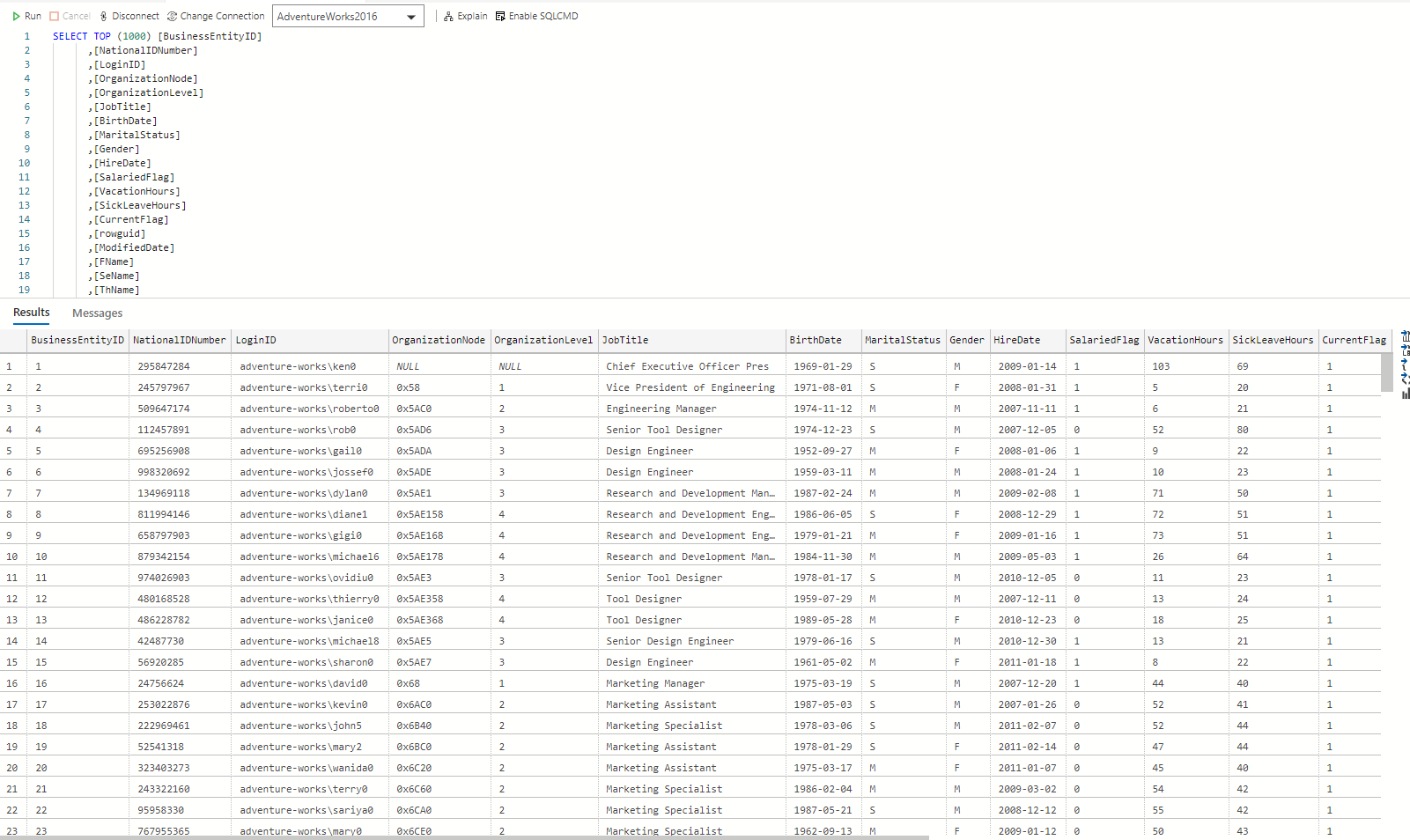 On the other hand, Select Top 100 options from the previous Manage Database objects window will allow you to retrieve the Top 100 records from that table, with the ability to modify the displayed query to customize the retrieved data, as below: