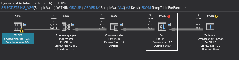 SELECT STRING_AGG(SampleVal,'-') WITHIN GROUP ( ORDER BY SampleVal ASC) AS Result FROM TempTableForFunction |