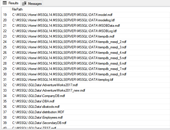 Output of the list of physical location of the mdf and ldf file are the following: