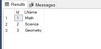 In this first example, we will insert multiple rows into a table with the help of the TVP. Firstly, we will create a table whose name is Lesson.