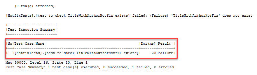 Next, we need to create another SQL unit test to check if the hotfix (represented as) object functions properly as now we know the object (TitleWithAuthorHotfix) is there: