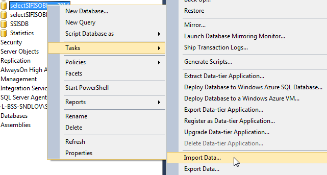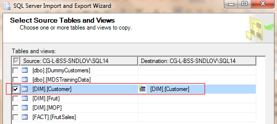 12345678CREATE TABLE [DIM].[Customer]([CustomerKey] [int] NOT NULL,[CustomerCode] [varchar](50) NOT NULL,[CustomerName] [varchar](250) NOT NULL,[InsertDate] [datetime] NOT NULL) ON [PRIMARY]Script 3: Customer dimension script without constraints An obvious work around to this would be to modify the table after the restore and add those missing constraints back to the dimension or fact table. Another workaround, instead of using the import wizard, would be to restore the selectSIFISOBlogs2014_BAK database on the same/linked server as selectSIFISOBlogs2014; drop and recreate the customer dimension and then use T-SQL (which will include temporarily disabling identity insert) to populate the compromised dimension as shown in Script 4.