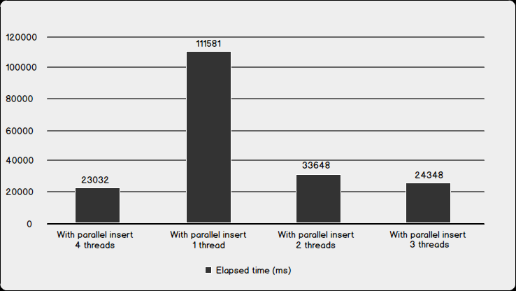 | With parallel insert 4 threads | 65031 | 23032 | 4 |