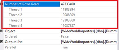 Parallel table insert: this operator indicates parallel insert operations. If we look at the properties of this operator, we can see insert operation distributed to 4 threads