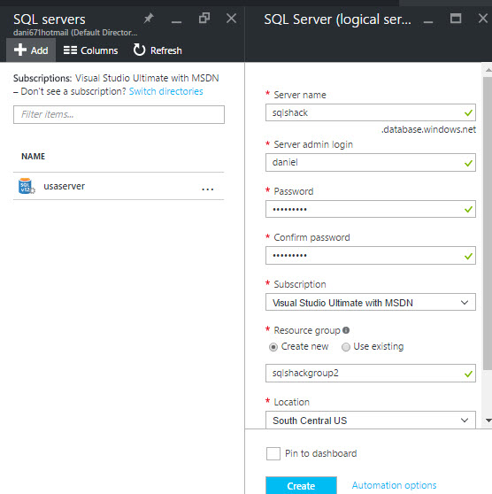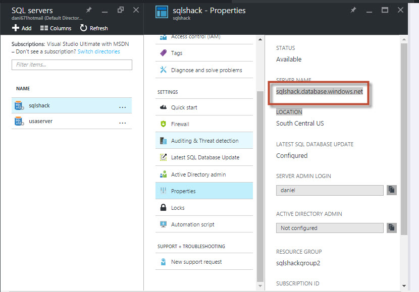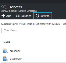 Once created, wait a few minutes and Refresh the list of SQL Servers. In this example, the SQL Server name is sqlshack: