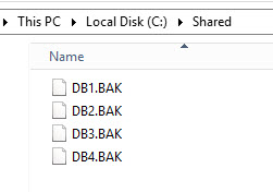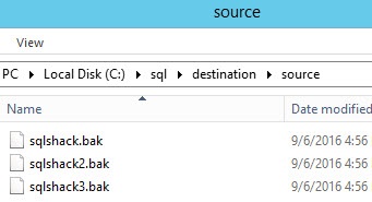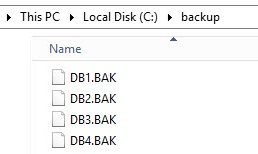 The following example will show how to copy several backups from one folder to another. We have several backups in the c:\backup path: