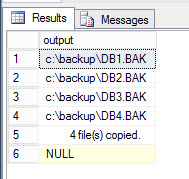 The following T-SQL statements will copy the files from c:\Backup to c:\Shared folder: