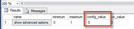 USE master; GO EXEC sp_configure 'show advanced option' |