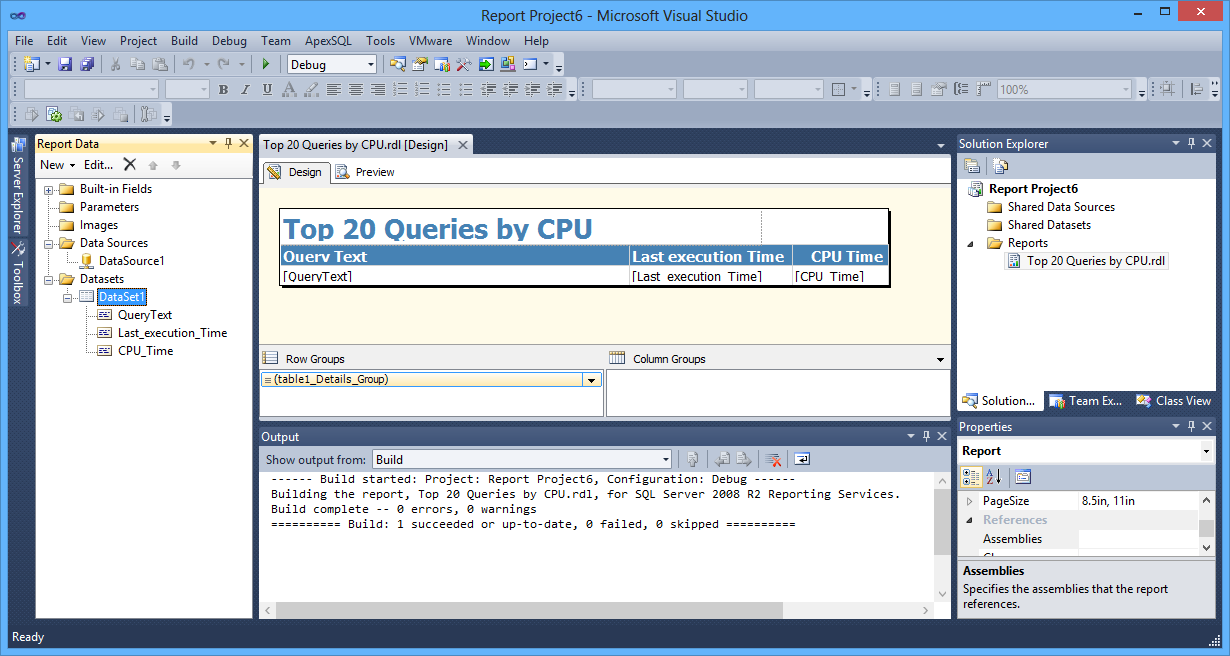 - To modify the report layout, use the Design pane. Adjusting the column size is needed quite often. To do that, just select and drag the column border, the same as in SQL Server Management Studio Results tab