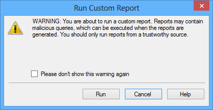 As shown, custom reports can contain malicious code that can seriously harm your SQL Server. To prevent any potential damage, it’s necessary to give only minimal permissions to custom report users, and to protect custom report files from unauthorized changes. With these security measures in place, custom reports can do no harm.