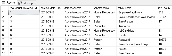 One additional note: If you are pulling data from an environment where there are many tables in many databases, the storage size of this can get unwieldy! For example, if you had 1,000 databases with 1,000 tables each, then you would get one million rows a day. Here are some suggestions to tame large row count data volume: