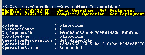 You can also get the Roles of a specific Azure Service. The following example shows the roles of the Service olapsqldan: