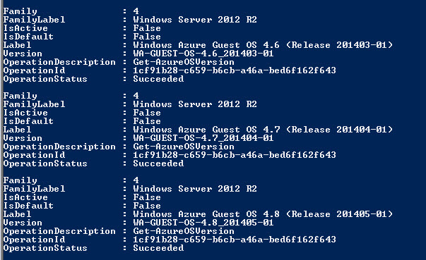 Figure 14. The Get-AzureOSDisk command Another useful cmdlet is the Get-AzureOSVersion. It shows all the OSs available in Azure.
