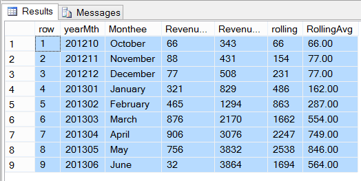 A few days ago I received an email from a gentleman in the healthcare industry. He had read an article that I had previously published a few years back on a well known SQL Server website. Based on the original article, he requested a few ideas on how to expand the sample code to do a rolling three-month revenue summary, in addition to a rolling three-month revenue average.