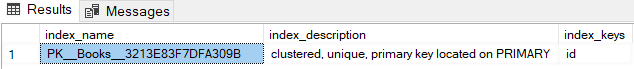 Let’s now create a custom clustered index that physically sorts the record in the Books table in the ascending order of the price. Since there can be only one clustered index, we first need to remove the default clustered index created via the primary key constraint. To remove the default clustered index, you simply have to remove the primary key constraint from the table that contains the default clustered index. Look at the following script: