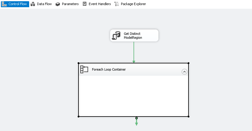 - First, it runs the execute SQL task (in this case, Get Distinct [ModelRegion]) and gets unique values for the [ModelRegion] in the full Result set variable
