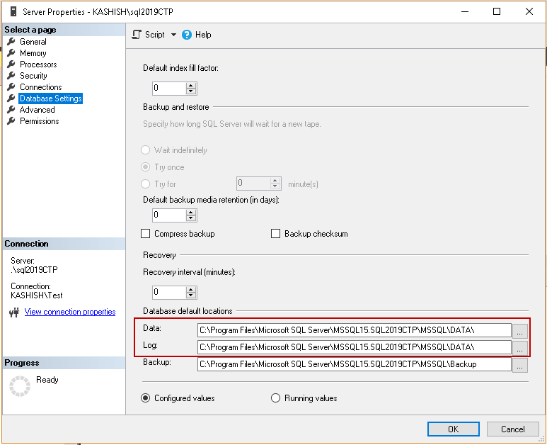 By default, Test-DbaLastBackup restores the database in default directories. To verify the default path right click on SQL Instance and properties. In the properties page, go to Database Settings and verify database default locations.