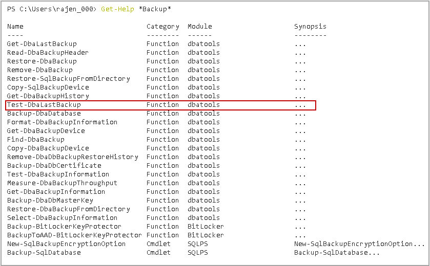 In the following screenshot, you can see all commands related to backups in DBATools.