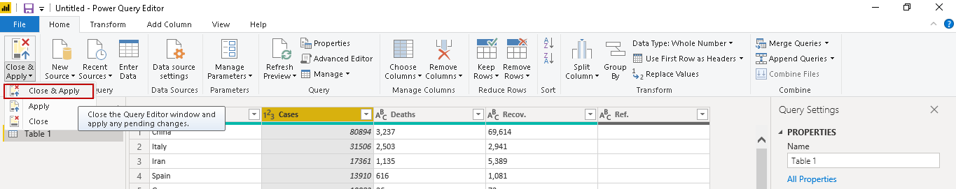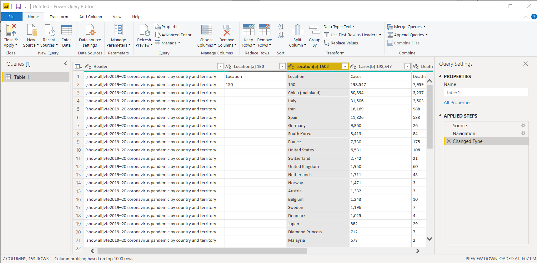 We can directly load this data or modify it per our requirement using Transform data. Let’s click on the transform data, and it opens Power Query Editor.
