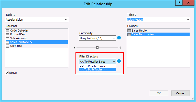 You are now able to choose the filter direction of your table relationships. Previously filters could only be applied in one direction which required complex DAX queries in order to avoid duplicates. A relationship can now be filtered in two ways, either single like before or both directions with.