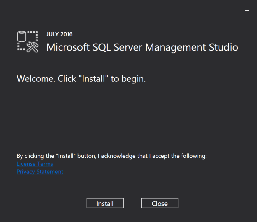 If you click on the Install SQL Server management Tools link in the SQL Server Installation Center window, it will open the (https://msdn.microsoft.com/en-us/library/mt238290.aspx ) download page automatically. Once the exe file downloaded completely, double-click on it, the below window will be displayed: