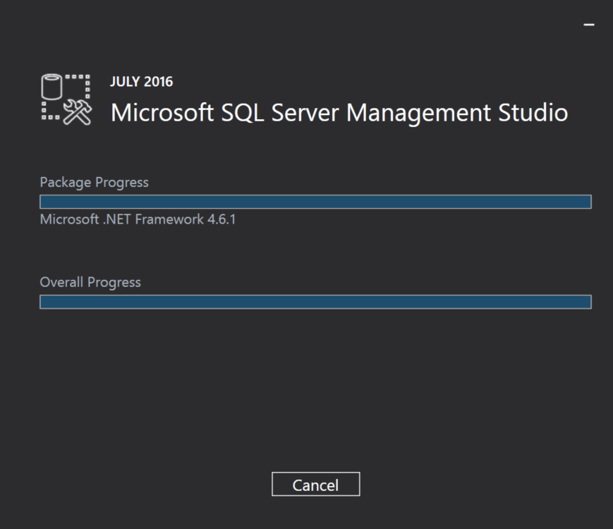 This window summarizes many steps of the SQL Server Management Tools installation. Just click on the Install button to acknowledge the license and privacy terms and start the installation process. It will start loading the installation packages as in the following window: