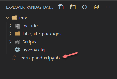 We are now all set to start writing our code for pandas and analyze our data. However, like the conventional way of using python files, we will instead write our code using a Jupyter Notebook, a feature within the VS Code. This will help us to read and execute our code in a more managed way. Create a new file with the extension as “.ipynb“. This is the extension for an IPython Notebook which is supported by Visual Studio Code.